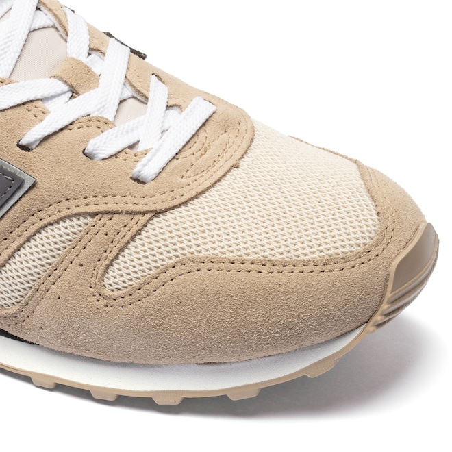 O cabedal (parte superior do tênis) é leve em mesh com detalhes em camurça para durabilidade e apoio.