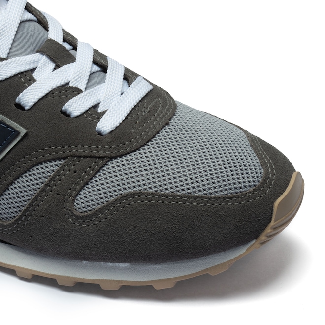 O cabedal (parte superior do tênis) é leve em mesh com detalhes em camurça para durabilidade e apoio.