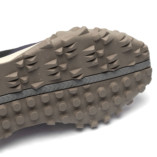 Seu cabedal reúne a leveza do têxtil com sobreposições em couro para durabilidade.