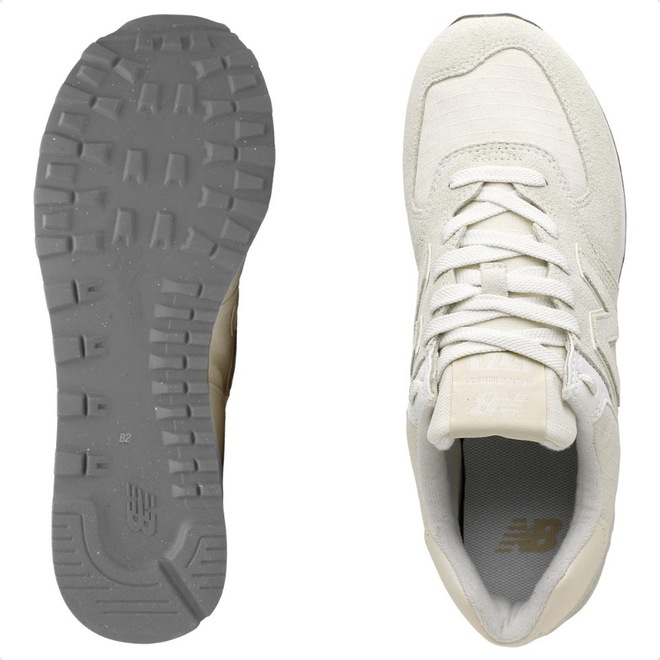 O design já conhecido da New Balance está presente na versão do 574 Windbreaker feminino.