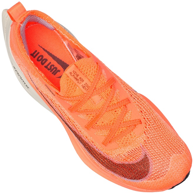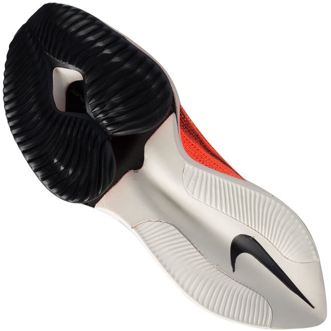 Já a entressola é otimizada pelas tecnologias Nike ZoomX e Zoom Air, combinação bombástica entre excelente amortecimento, além de responsividade e estabilidade.