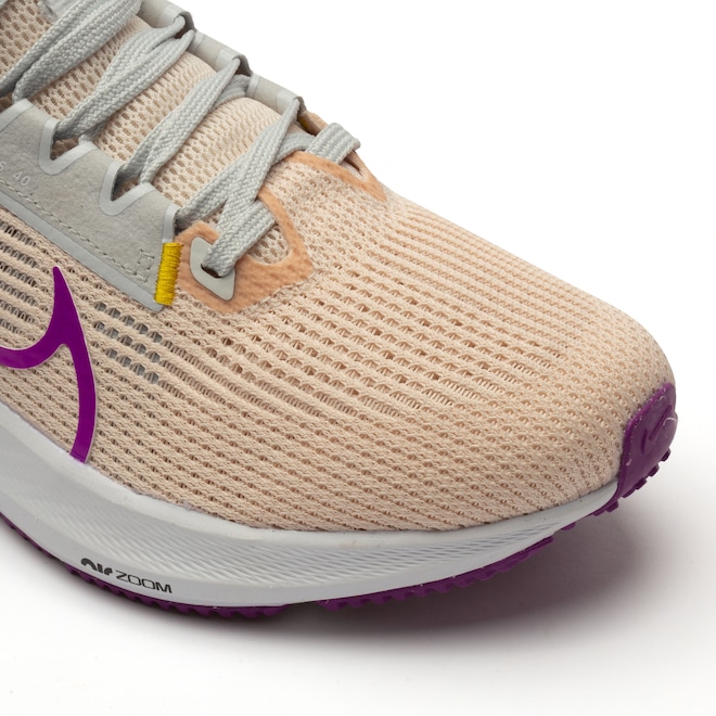 Já a ntressola do Pegasus 40 possui o EVA em toda a extensão combinado à tecnologia Nike Zoom Air, que oferece resposta rápida de movimentos, proteção contra impactos, estabilidade e sensação de baixo perfil.