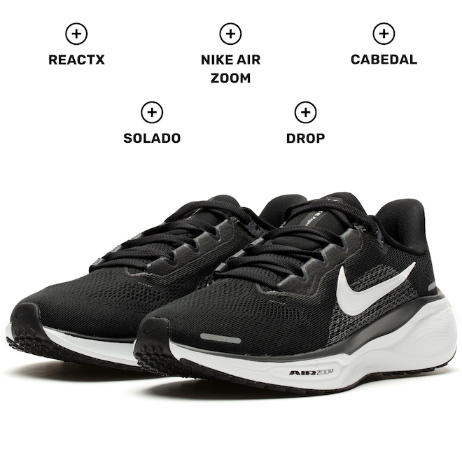 Equipado com a nova tecnologia ReactX, que é 13% mais responsiva que a versão anterior, o Pegasus 41 melhora a eficiência em cada corrida. O solado Waffle de borracha garante aderência superior em diferentes superfícies, proporcionando segurança e durabilidade.