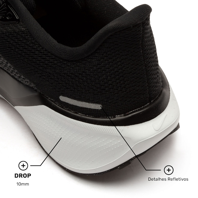 Além disso, os detalhes refletivos aumentam a visibilidade em condições de baixa luz, ideal para treinos noturnos. Com suporte acolchoado e palmilha forrada, você tem conforto extra a cada passo.