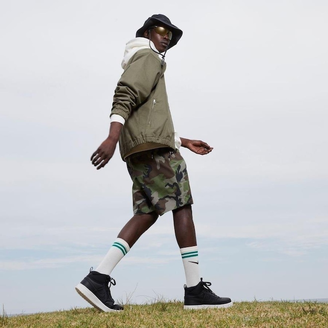 Um mix de materiais duráveis e macios conferem aquecimento, enquanto proporcionam um visual de basquete testada pelo tempo que está pronta para o clima frio.