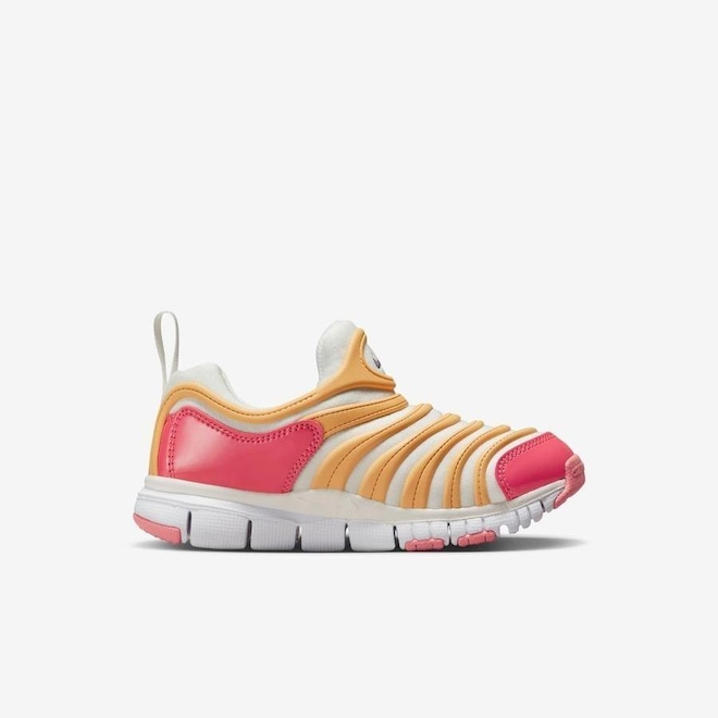 O Nike Dynamo Free permite que os pezinhos se movam facilmente em um design superflexível de cima até embaixo.Além disso, ele é fácil de calçar e descalçar.