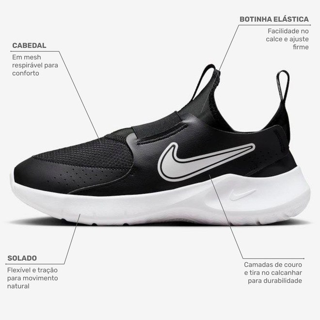 Tênis de corrida mais práticos. Feito para crianças que adoram brincar o dia todo, o Nike Flex Runner 3 combina um design de bota elástica com uma sola flexível e tração aderente. Ele não tem cadarço, por isso é super-rápido de calçar e descalçar. E aí, quem está pronto para correr?