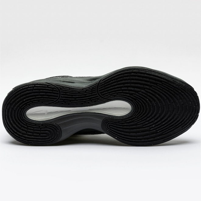 O solado emborrachado proporciona tração superior, ideal para movimentos ágeis em quadra.