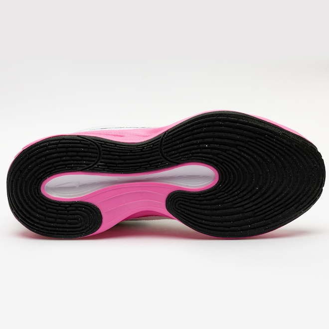 O solado emborrachado proporciona tração superior, ideal para movimentos ágeis em quadra.