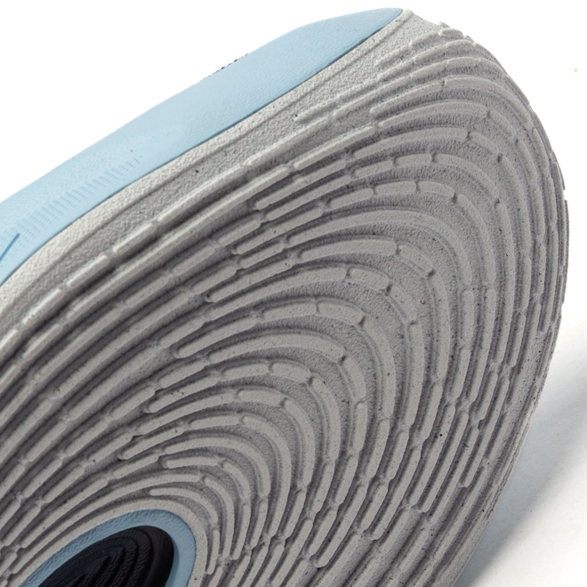 O solado emborrachado proporciona tração superior, ideal para movimentos ágeis em quadra.