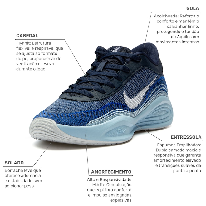 A tecnologia Flyknit ajusta-se ao tornozelo com um tecido macio e elástico, oferecendo suporte e segurança aprimorados.