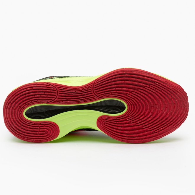 O solado emborrachado proporciona tração superior, ideal para movimentos ágeis em quadra.