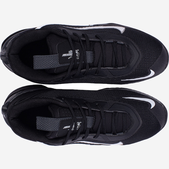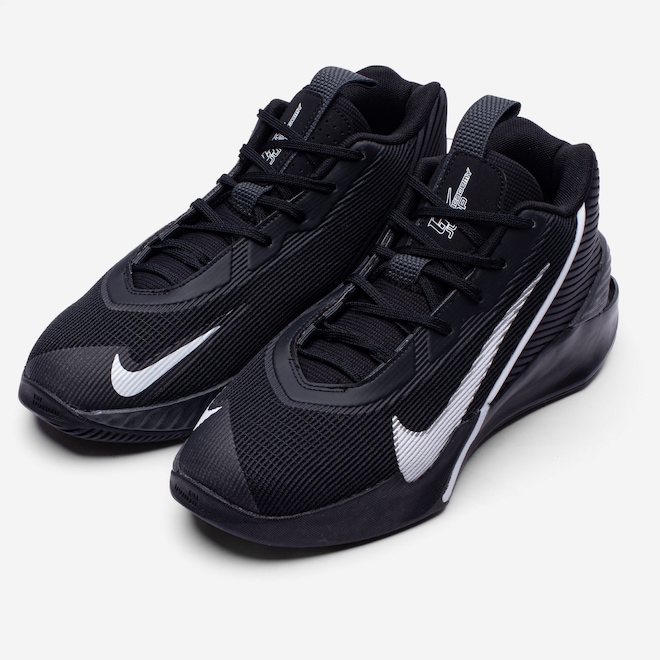 O colarinho alto oferece suporte extra em saltos constantes, enquanto o cabedal texturizado proporciona estrutura com respirabilidade.