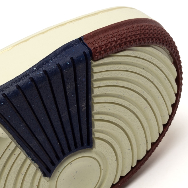 Ainda conta com lingueta flexível, sua palmilha é injetada e tem forro com reforço acolchoado.