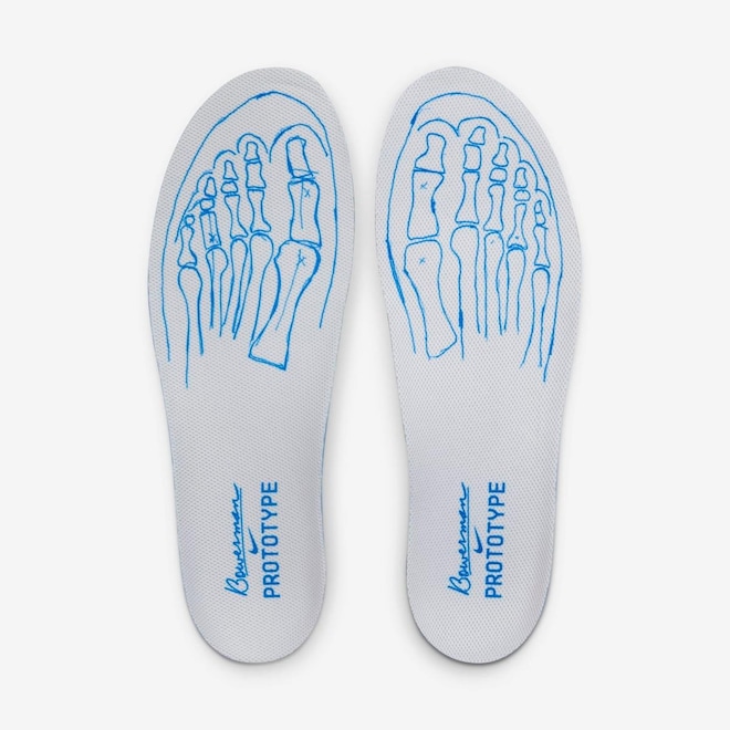 Bill Bowerman, o inovador original da Nike, colocou nosso projeto em prática. Ele inspirou os detalhes de design da coleção Blueprint, como o logo Swoosh salpicado e os esboços de pés na palmilha. Eles nos lembram de onde estivemos enquanto seguimos em frente.