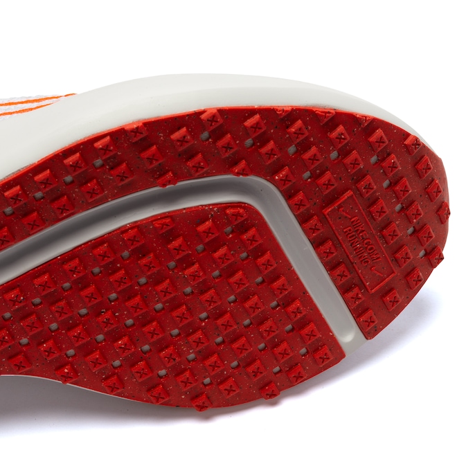 O solado Waffle contém pelo menos 13% de material Nike Grind, um material produzido com retalhos do processo de fabricação dos calçados.