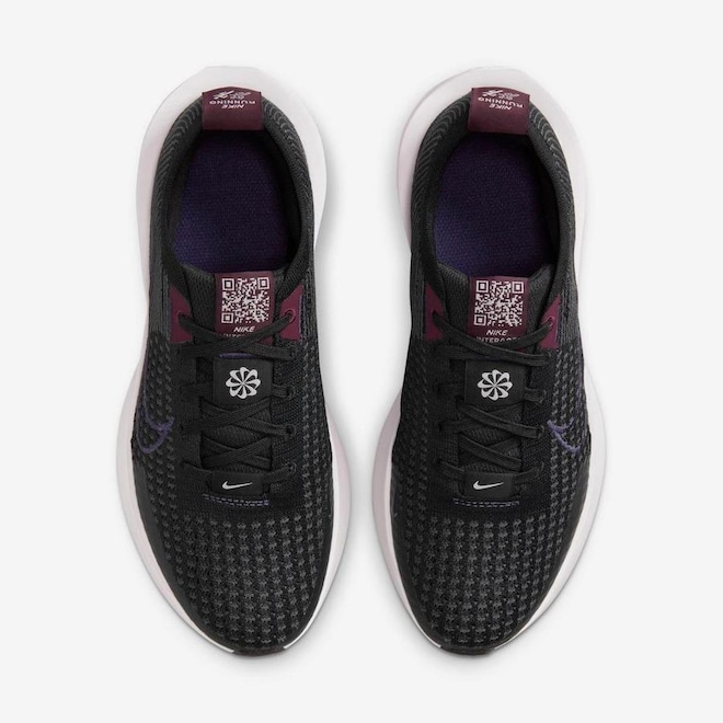 Um código QR escaneável na língua atua como seu guia turístico para os benefícios de desempenho do Interact Run. Ele oferece dicas sobre como prolongar o ciclo de vida do seu calçado, desde opções de manutenção até reparos e cuidados de longo prazo. Finalmente, quando você registrou todos os quilômetros que puder, o código QR irá sugerir maneiras de reciclar e doar os tênis assim que eles terminarem.