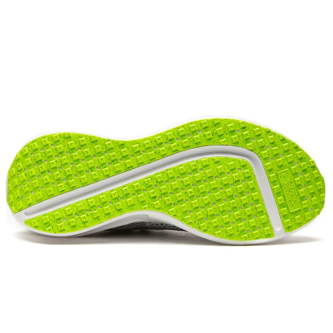 A entressola em EVA e o solado em borracha oferecem amortecimento responsivo, suporte anatômico e a leveza garantem que cada passo seja suave e eficiente.