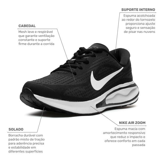 AcolchoadaPalmilha Forrada Material do Forro Têxtil Tipo de Amarração Cadarço Estampa do Logo Estampado no Cabedal Garantia do Fornecedor Contra Defeito de Fabricação Conteúdo da Embalagem 1 Par SAC do Fornecedor NIKE: São Paulo: (11) 3020-8118 Demais localidades: 0800 703 6453 Entressola EVA Pisada Neutra Terreno Indicado Academia/Esteira
