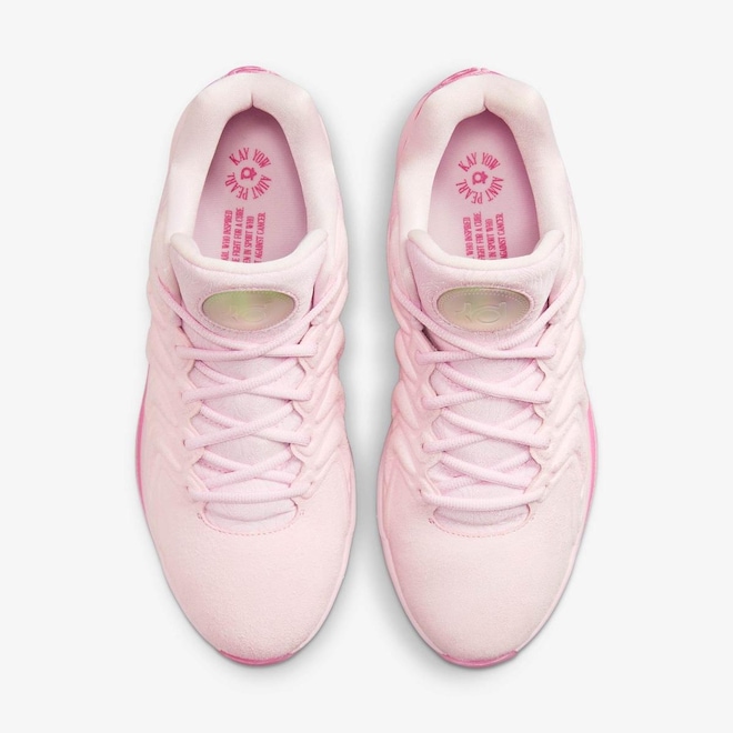 Embora o status do Kevin Durant já esteja consolidado, sua alma de arremessador não pode ser acalmada a menos que ele esteja na quadra, aperfeiçoando sua arte. Trabalhe para ficar ótimo com o KD17, um tênis para ratos de academia e para aqueles que insistem em correr de volta. Uma unidade Zoom Air no antepé dá um toque especial ao seu primeiro passo. Nós a combinamos com o amortecimento Nike Air para impulsionar sprints completos em campo e defesas que podem decidir os jogos. Este design especial todo rosa homenageia a tia de KD que faleceu de câncer de pulmão em 2000, mas nos inspira a continuar lutando para encontrar uma cura.