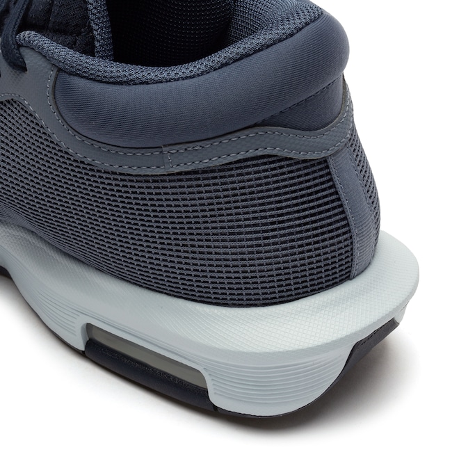 Amortecimento Air Max na entressola de baixo perfil é combinado com uma espuma envolta para suporte quando você estiver se movimentando lateralmente. Nós o colocamos especificamente no antepé para ajudar a reduzir o peso e aumentar a capacidade de resposta. Ele ajuda a amortecer a sua aterrissagem, enquanto proporciona suporte para uma transição suave do calcanhar aos dedos. Além disso, ele proporciona estabilidade lateral e ajuda a canalizar e direcionar sua força.