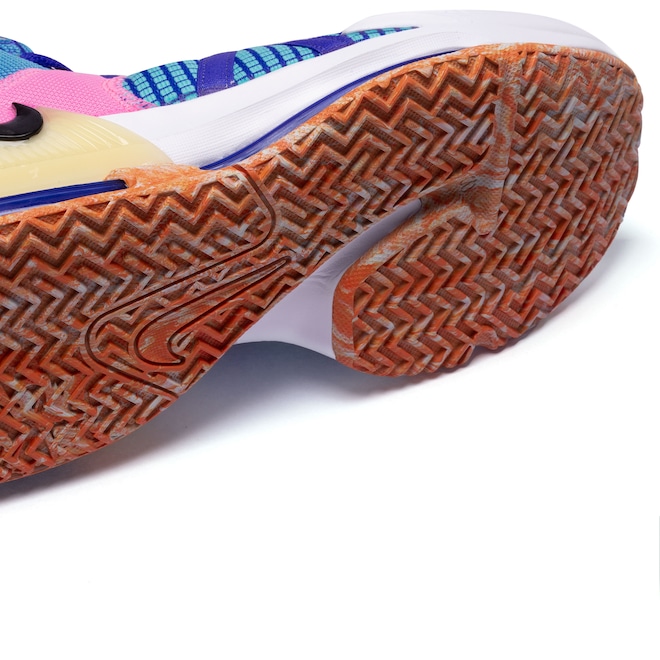 Já o solado possui um padrão de tração agressivo com ranhura na altura no arco para maior flexibilidade durante a movimentação em quadra.Indicado para: Basquete