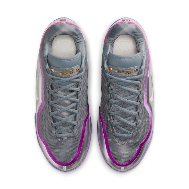 Com jacquard trabalhado e forro premium para botas, o LeBron XXIII é o máximo em luxo leve, para que você possa chegar aos seus lugares e manter seus cortes extremamente precisos.