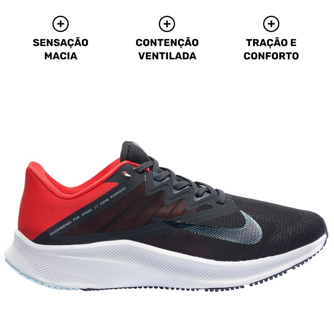 Versátil, o Nike Quest 3 é seu aliado diário na caminhada, academia ou atividades casuais.