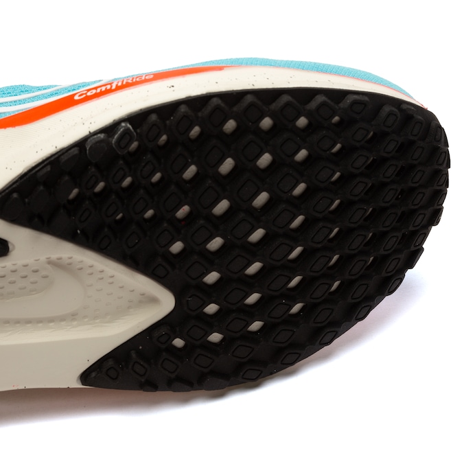 - O solado de borracha tem tração para garantir mais aderência no asfalto.