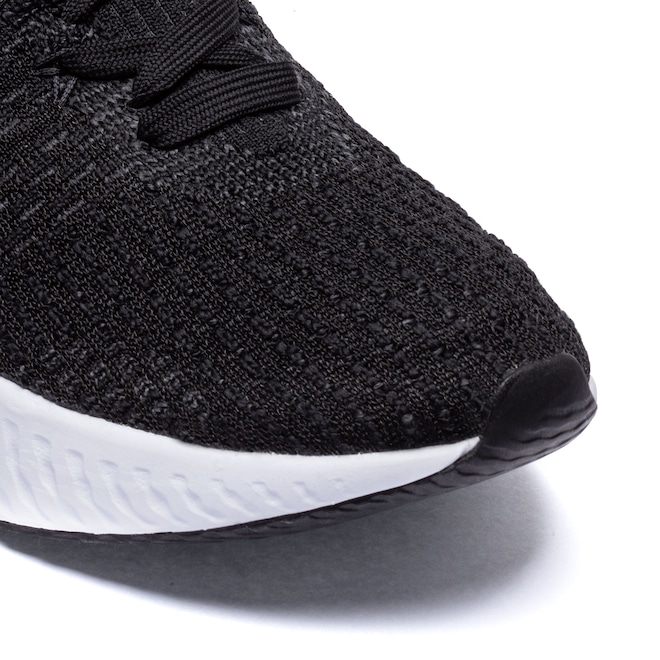 A estrutura do cabedal (parte superior do calçado) em Flyknit que amplia a respirabilidade e flexibilidade para seguir os movimentos e manter os pés ventilados.