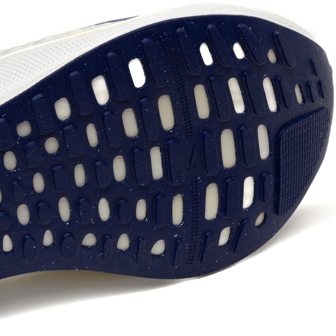 O cabedal é sintético e em mesh, a entressola é em EVA e o solado emborrachado.