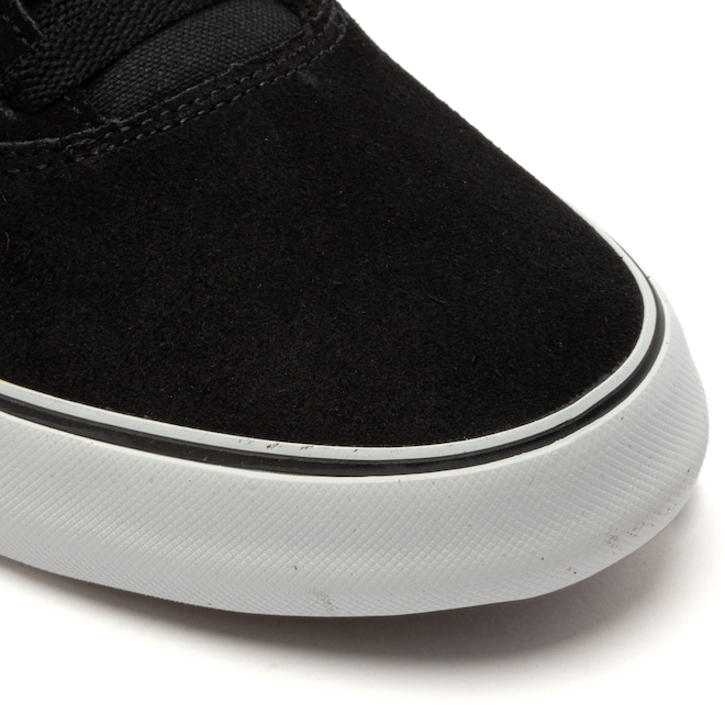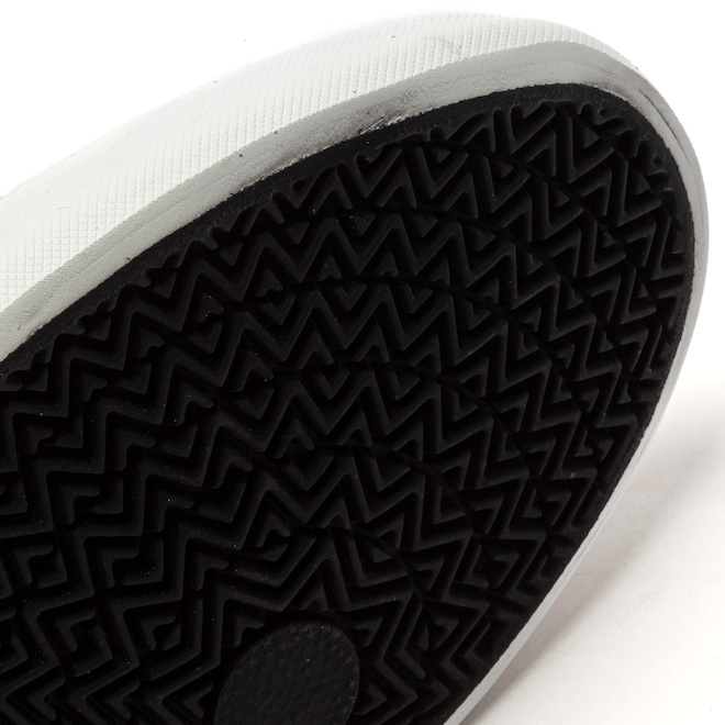 O cabedal (parte superior do calçado) tem material têxtil e camurça, entressola e solado emborrachado.