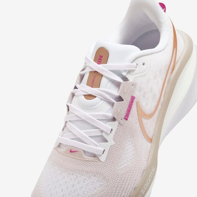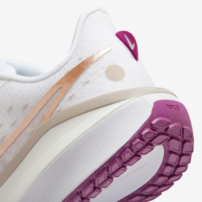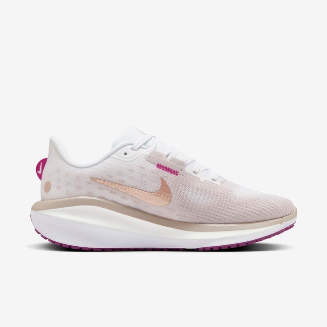 Esse tênis se orgulha do conforto premium que coloca você no controle de cruzeiro por quilômetros curtos a longos. Mesh trabalhado torna o cabedal mais leve e respirável em comparação com os Vomeros anteriores. Uma palmilha macia oferece conforto na entrada e um colarinho macio é suave para o calcanhar na hora de correr. A língua acolchoada e os cadarços macios e elásticos completam uma experiência geral extremamente confortável.