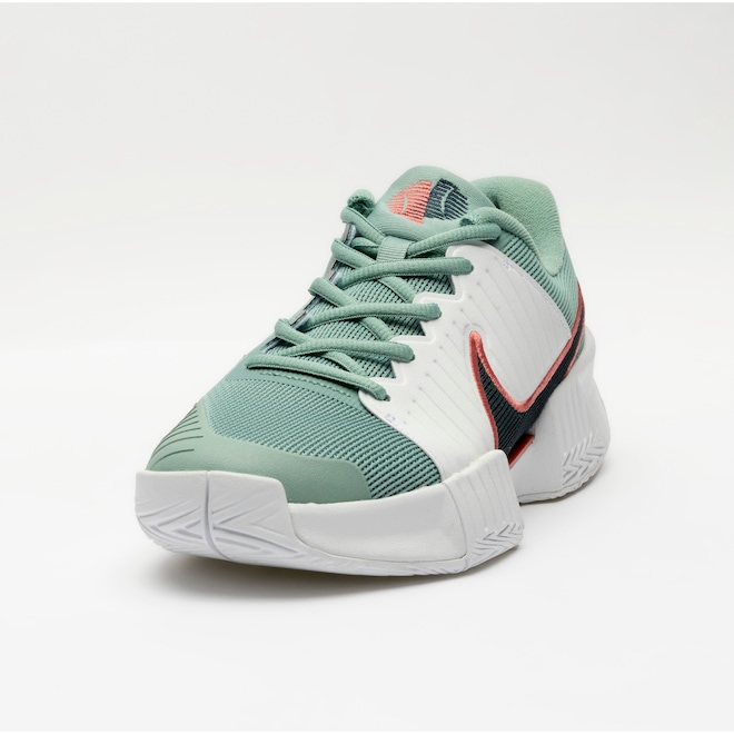 A tecnologia Nike Claybreaker ajuda a aprimorar a tração e diminuir o acúmulo de detritos de saibro real. A aderência adicional no antepé e no médio pé age com um padrão de tração amplo ajudam você a deslizar com controle. Usamos mapas de tração e de pressão e analisamos áreas de acúmulo de saibro para o design. Em seguida, testamos em quadras de saibro real na Europa em várias condições climáticas do saibro (frio, quente, molhado e seco).