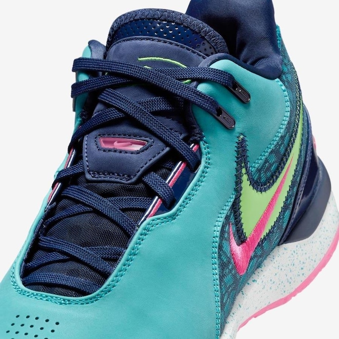A unidade Air Zoom no antepé é curva para proporcionar flexibilidade em várias direções. Ela fornece retorno de energia para curvas rápidas e responsivas e oferece uma sensação de quadra flexível que se move naturalmente com o pé. A unidade Zoom Air carregada no calcanhar aumenta o amortecimento.