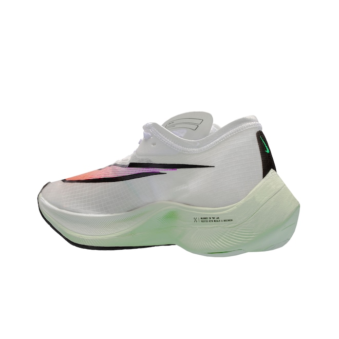 Se superação é sua meta? O Nike Zoom Vaporfly % é seu aliado diário em seus treinos de grande performance.O cabedal (cabedal parte superior do calçado) é respirável e construção leve, passando a sensação de liberdade durante a corrida.Outro diferencial é as diversas combinações de tecnologias que fazem com que o tênis ofereça um ótimo amortecimento, proporcionando sensação de propulsão, gerando menos gasto de energia e mantendo o pace estável.VaporWeave: Leve e resistente com mínima absorção de água.