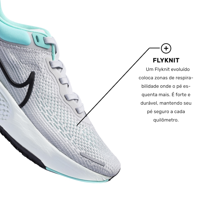 Flyknit: Revolução que combina fios de malha em um cabedal de peça única para suporte, flexibilidade, ventilação e extremo conforto.