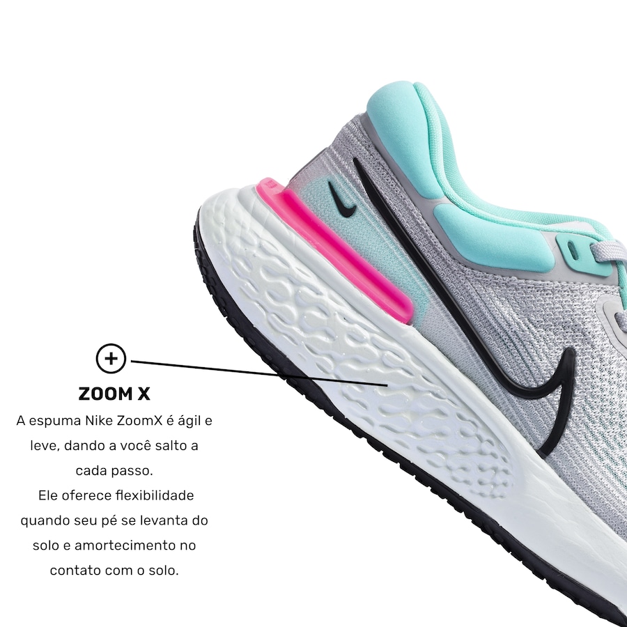 Nike ZoomX: Espuma mais leve com amortecimento responsivo.