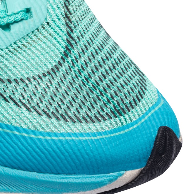 Outro diferencial é a combinação da tecnologia com a placa de carbono em toda sua extensão que contribui para um ótimo amortecimento, proporcionando sensação de propulsão, gerando menos gasto de energia mantendo o pace estável.