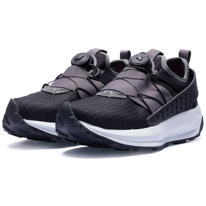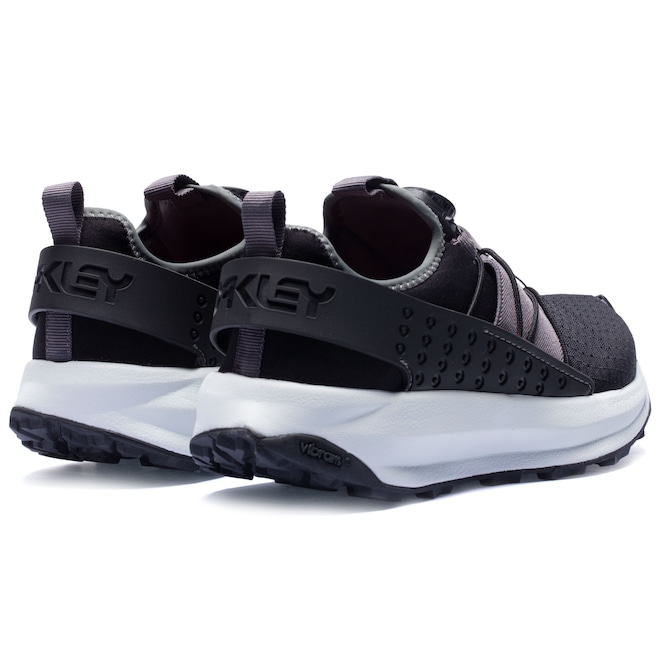 O tênis Oakley masculino possui disco de regulagem que garante uma fixação, amarração e desamarração, do calçado de modo rápido, prático e firme, evitando entorses e movimentos desnecessários no calçado.
