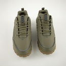 Sua construção utiliza materiais sintéticos de alta durabilidade, com 70% PU e 30% tecido poliéster, oferecendo suporte, conforto e respirabilidade em diferentes terrenos. O solado Flak reforça a tração e estabilidade, sendo ideal para quem enfrenta superfícies variadas sem abrir mão de um visual limpo e versátil.