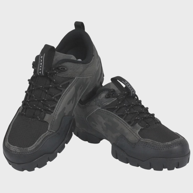 O Tênis Oakley Modoc Low II Camo Jet Black tem o cabedal produzido em couro com detalhes em lona. Logo Oakley em metal e ilhoses personalizados ,forro em tecido que absorve umidade