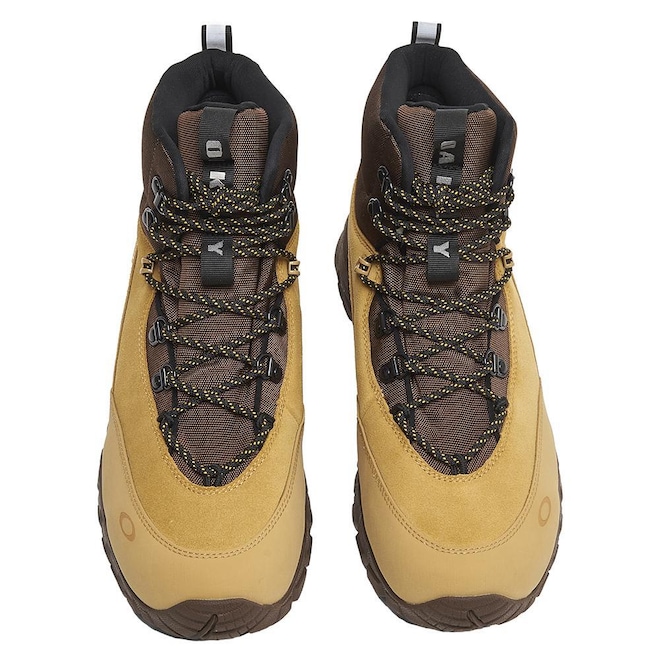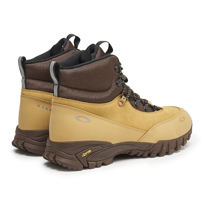 Tênis Oakley com sola de Vibram com design em relevo, parte superior em material não natural, atacador trançado com ilhós de metal, logotipo Oakley refletivo na língua e no interno, logotipo Ellipse na lateral, detalhe refletivo no puxador e etiquetas personalizadas.