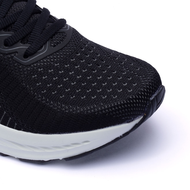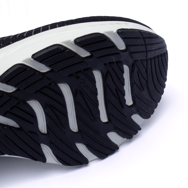O cabedal é sintético e têxtil, o solado é emborrachado promovendo maior aderência e o contraforte tem suporte acolchoado.