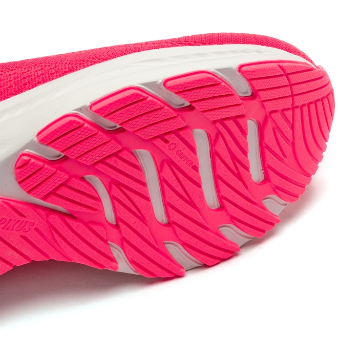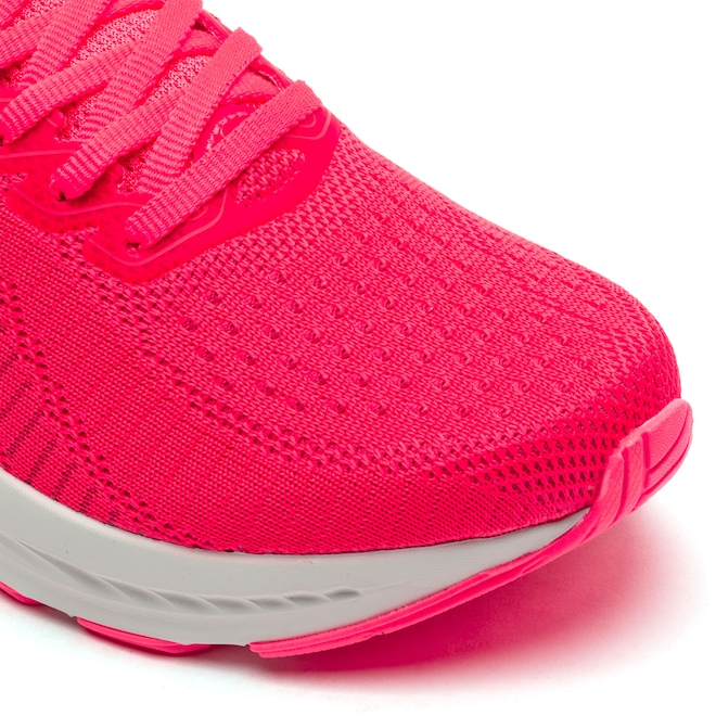 O cabedal é sintético e têxtil, o solado é emborrachado promovendo maior aderência e o contraforte tem suporte acolchoado.