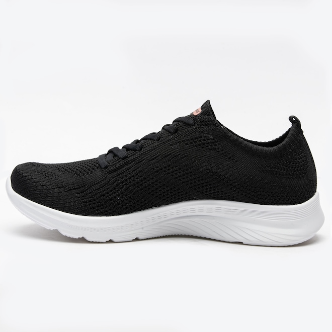 O cabedal (parte superior do calçado) em malha leve e flexível, facilita no calce e possibilita um ajuste personalizado aos movimentos dos pés.