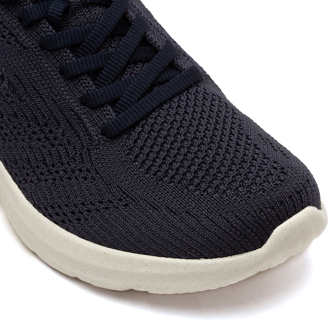 O cabedal (parte superior do calçado) em malha leve e flexível, facilita no calce e possibilita um ajuste personalizado aos movimentos dos pés.