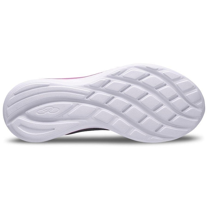 Sua palmilha é plana, composta por tecido poliéster e EVA, com aplicação gráfica.
