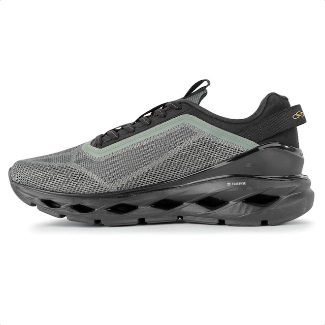 O seu solado possui dupla camada da Tecnologia Evasense, que proporciona conforto e amortecimento.