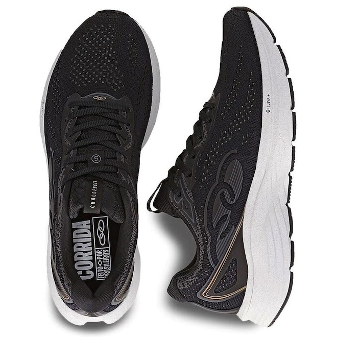 resistência do produto, enquanto elementos gráficos bicolor destacam o logo Olympikus na lateral do tênis. A lingueta é produzida em
